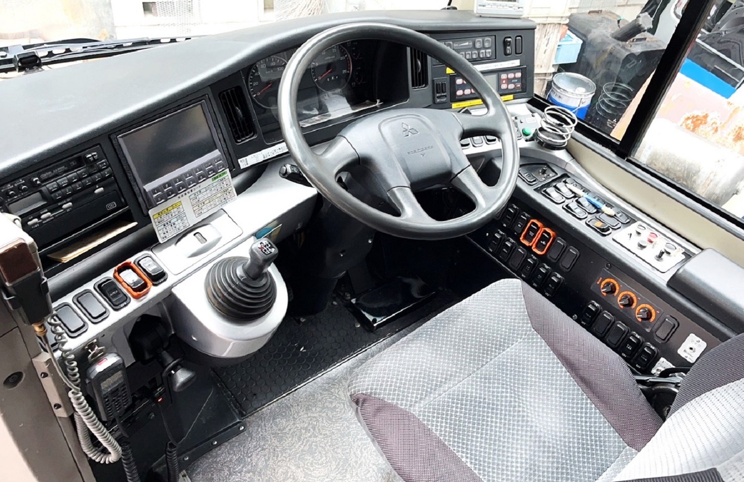 バス架装:社名 デザインステッカー、ラッピング、音響機器、音声アナウンスシステム、無線機、料金箱、ドライブレコーダーなど用途に応じた架装を行います。