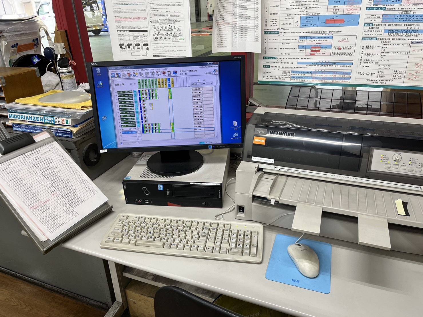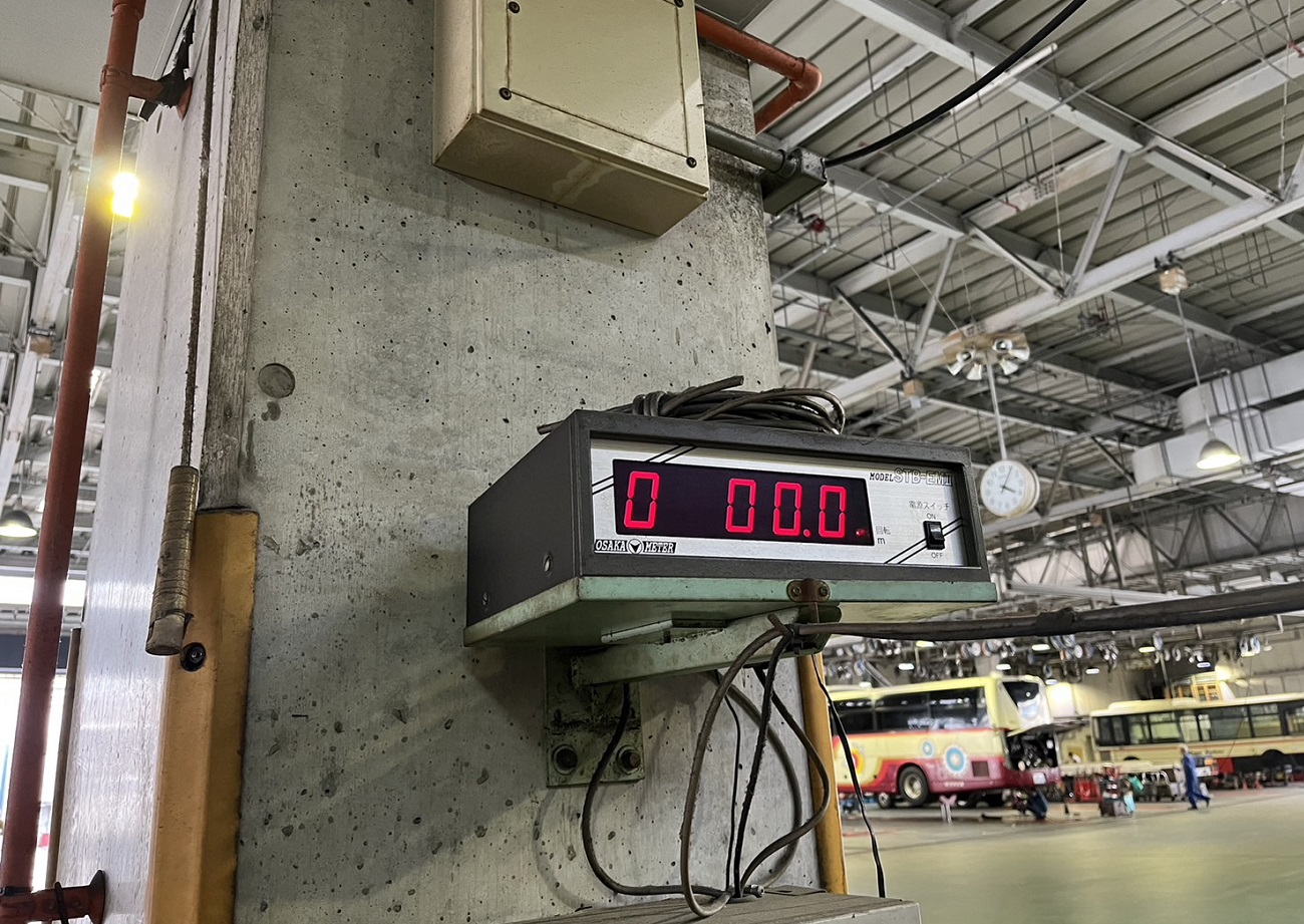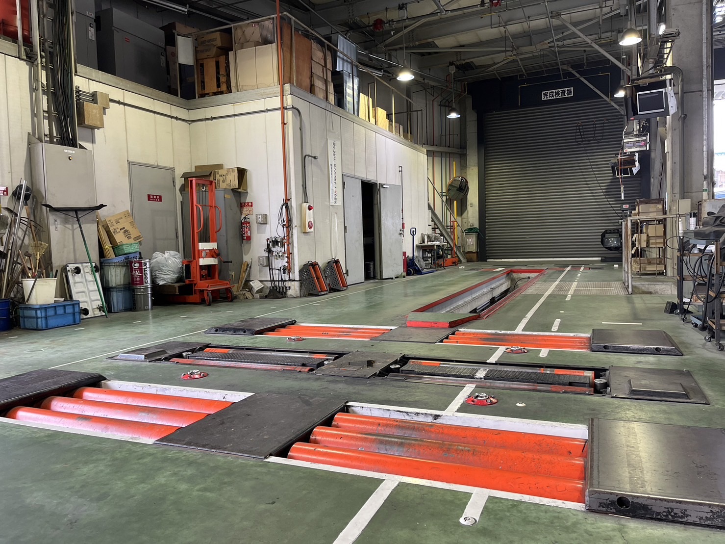 検査測定値をオンラインで接続するネットワークシステムと大型2軸車輌にも対応可能な規模です。